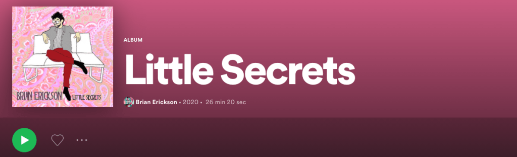 ASBURY PARK, NJ – Little Secrets, the first-ever solo album from indie singer-songwriter Brian Erickson, glides along on a wave of casual virtuosity. Entirely self-produced, recorded, and performed at Erickson’s home during the COVID-19 quarantine, introspective lyrics are grafted to featherlight hooks to create a masterfully crafted record of pastoral bedroom pop.