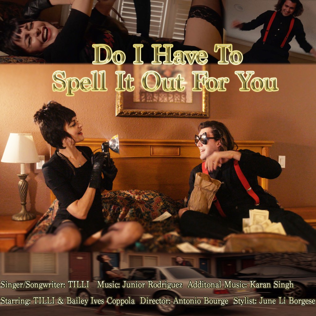 Let’s Talk about your music and your last work… yeah so the most recent work …“ Do I Have To Spell It Out For You “ is a song that I wrote with Junior Rodriguez a very talented musician that lives in Paris . The gist of it is every once in a while you meet someone you would happily go criminal with . That’s why I love The Cramps so much . They had that element together . We made the video here in Hollywood with young film director Antonio Bourge , Karan Singh , Bailey Coppola as my partner in crime and June Li Borgese styled it . The next upcoming songs are in collaboration with Karan Singh and we’re in the studio now